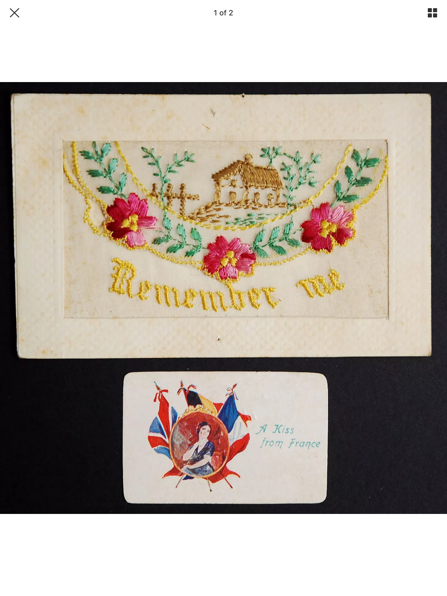 Just this weekend I purchased an embroidered silk postcard from the First World War, in good condition and with the soldier’s name and number written clearly, as well as the name of the recipient.